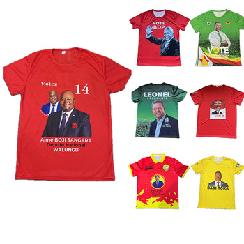 卸売選挙キャンペーンアフリカフルプリントニットシルクスクリーンプリントユニセックス半袖クイックドライポリエステルTシャツ
